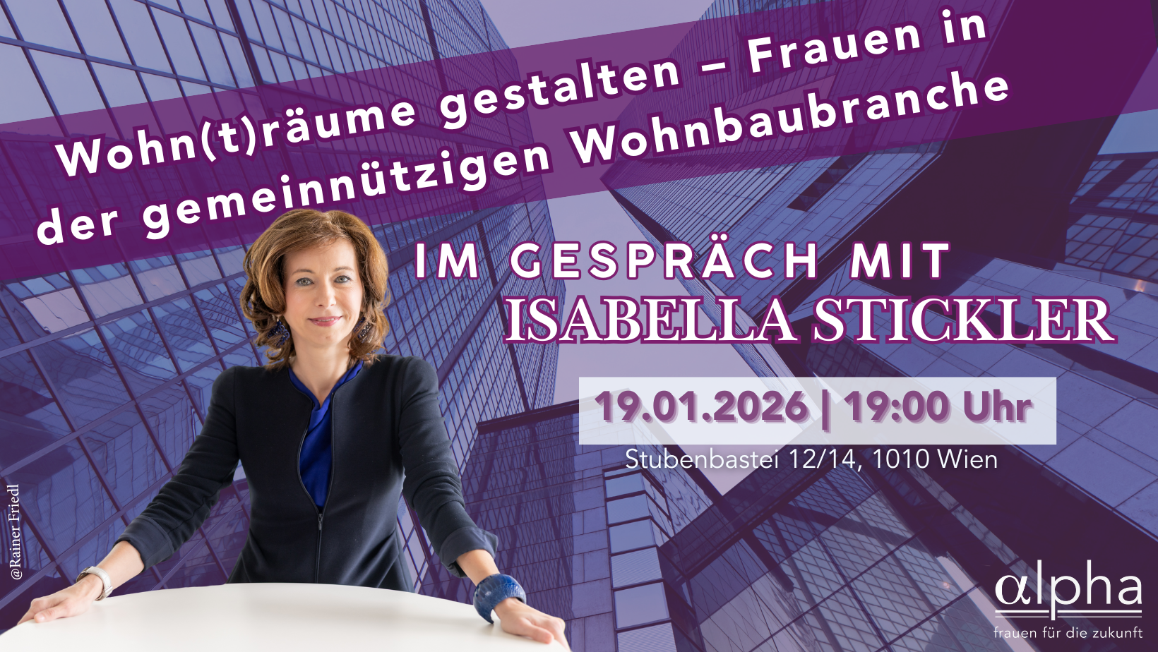 Club alpha Stubenbastei 12/14, Wien, ÖsterreichIm Gespräch Referentin: Isabella Stickler Moderation: Corina Dominko Frauen in der gemeinnützigen Wohnbaubranche Frauen prägen den gemeinnützigen Wohnbau […]